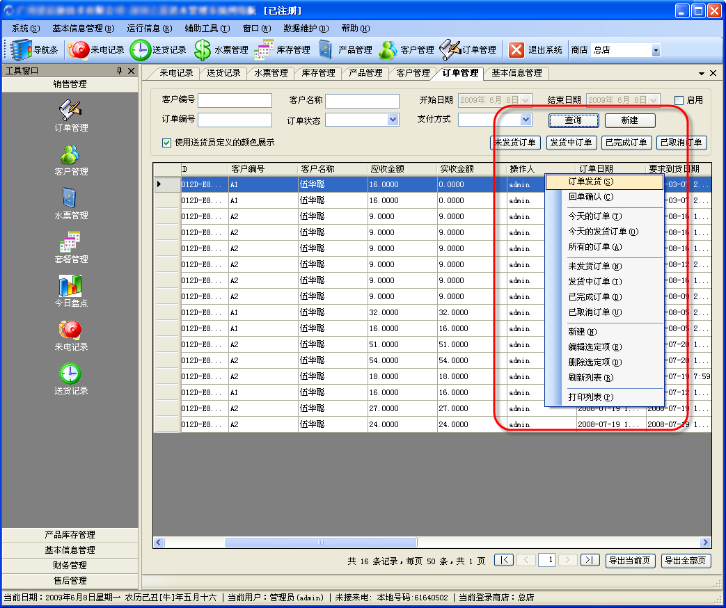 軟件主要功能有來電顯示及電話錄音、客戶管理、訂單管理、水票管理、權(quán)限管理、送水工管理、庫存管理、財務(wù)管理、售后管理、報表打印等眾多實用有效的的功能。
